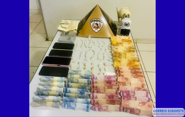 Em diligências na residência associada ao suspeito, foram apreendidos três celulares e duas câmeras de segurança, possivelmente utilizadas para monitorar o movimento e auxiliar na atividade ilícita.