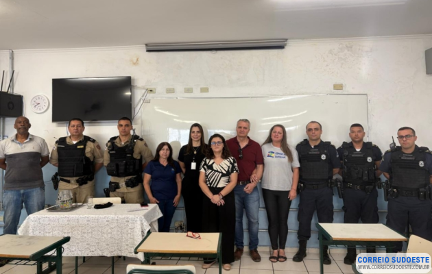 A reunião contou com representantes do Conselho Tutelar — Flávia, Carla, Luiza e Antônio Carlos —, da Polícia Civil, com o delegado Dr. Álvaro Lucas de Rezende Martins, da Polícia Militar, representada pelo Tenente Douglas e Subtenente Robson, além da Guarda Municipal, com os agentes Igor Barrera, Marcelo e Fernando. A diretora da escola, Elismara, também esteve presente, reforçando o compromisso da instituição com a segurança e o bem-estar dos alunos.